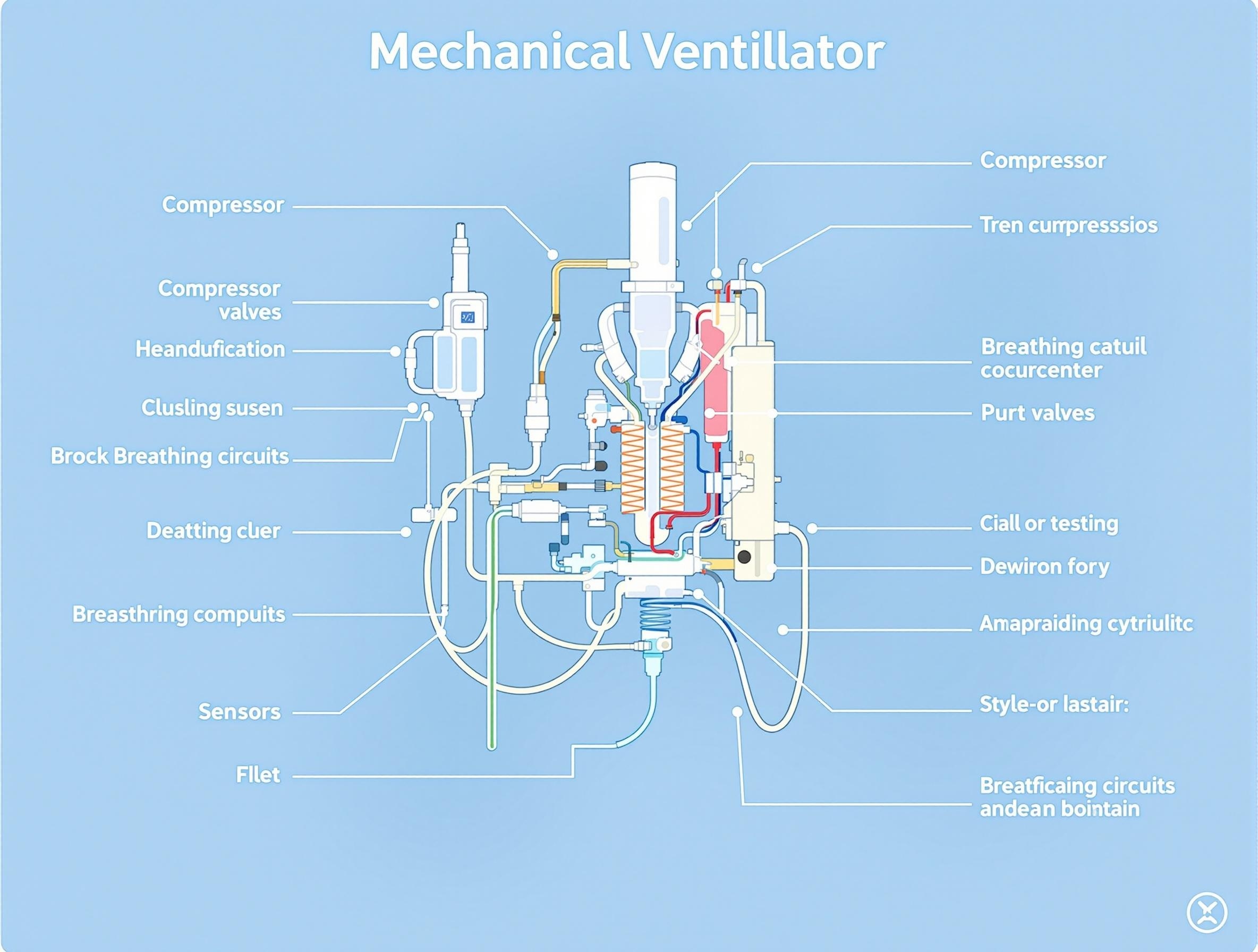 Дыхательный контур соединяет аппарат с пациентом и включает в себя инспираторную и экспираторную магистрали, увлажнительную камеру, бактериальные фильтры и соединительные элементы. Качество дыхательного контура напрямую влияет на эффективность вентиляции и безопасность пациента.